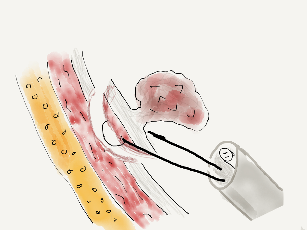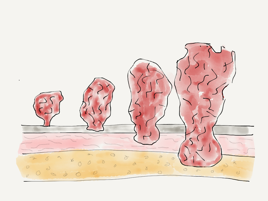 A bladder tumor grows on the surface of the bladder in the initial stages. The transurethral resection removes the tissue from the surface of the bladder and the connective tissue layer and muscle beneath. For superficial tumors (on the surface) this is often curative, for invasive tumors it performs an assessment of the stage of the cancer.